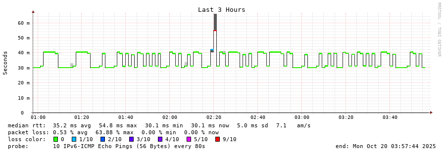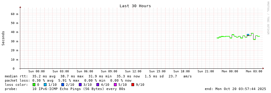 traceroute to www.facebook.com (2a03:2880:f343:1:face:b00c:0:25de), 30 hops max, 80 byte packets - Generated at 2025-10-20 03:45:01