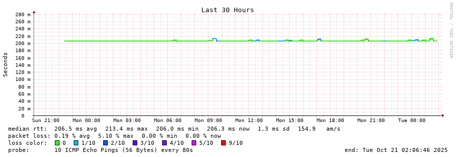 8 > be5992.ccr42.lax01.atlas.cogentco.com (154.54.169.2) [AS174] 29.932ms 29.921ms 30.003ms