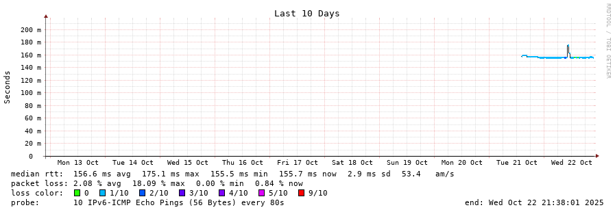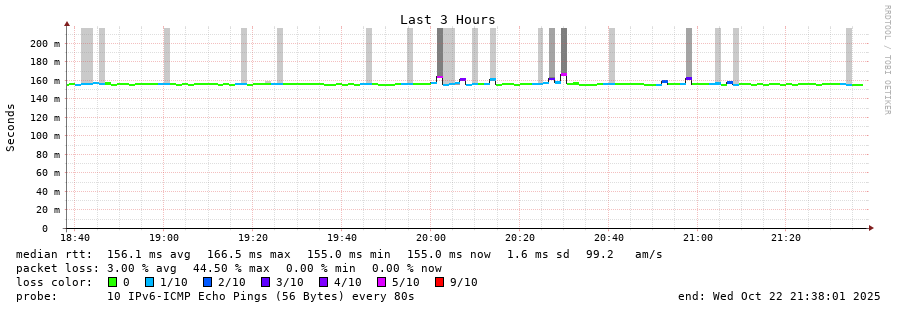traceroute to 2001:4350:1:1::ff90 (2001:4350:1:1::ff90), 30 hops max, 80 byte packets - Generated at 2025-10-22 20:45:02