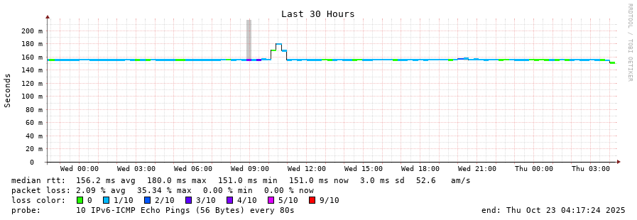 12 > 2001:4350:0:1010::3 (2001:4350:0:1010::3) [AS5438] 155.652ms 155.866ms 155.735ms