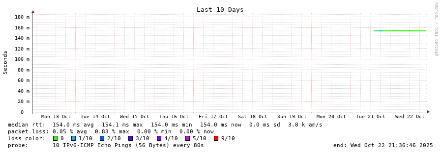 22 > 2001:b68:d::28 (2001:b68:d::28) [AS2108] 154.098ms 154.100ms 154.117ms