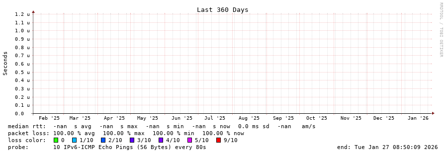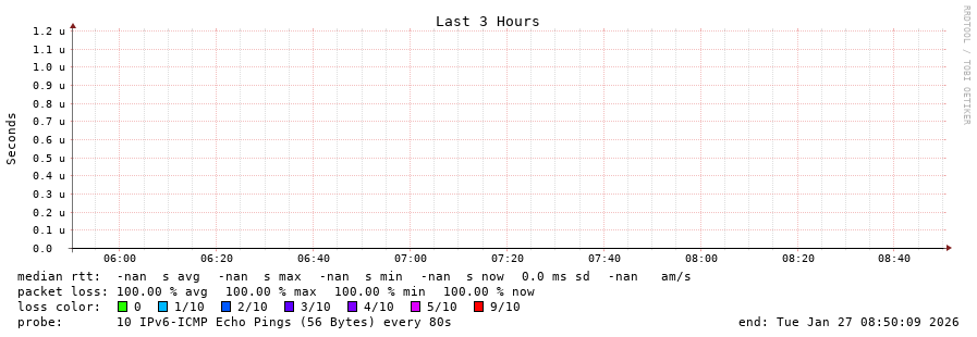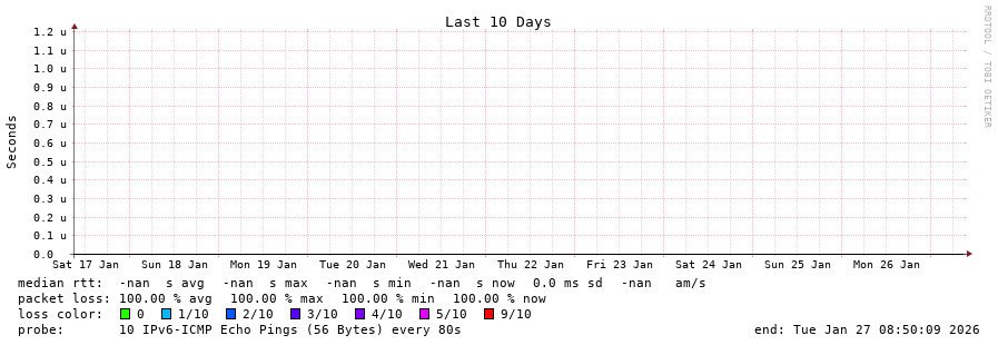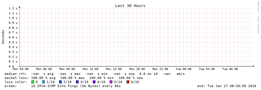 traceroute to fd69:226f:3a3c::2 (fd69:226f:3a3c::2), 30 hops max, 80 byte packets - Generated at 2026-01-27 08:30:01 3 > 4 > 5 > 6 > 7 > 8 > 9 > 10 > 11 > 12 > 13 > 14 > 15 > 16 > 17 > 18 > 19 > 20 > 21 > 22 > 23 > 24 > 25 > 26 > 27 > 28 > 29 > 30 >