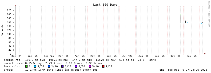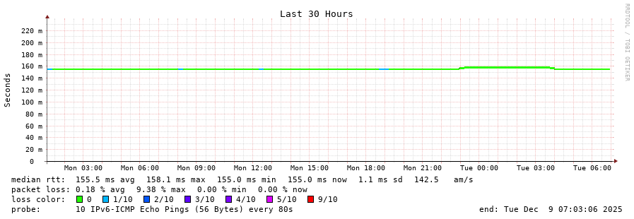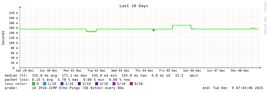 traceroute to 2a00:c30:bbbb:d::2 (2a00:c30:bbbb:d::2), 30 hops max, 80 byte packets - Generated at 2025-12-08 11:45:01