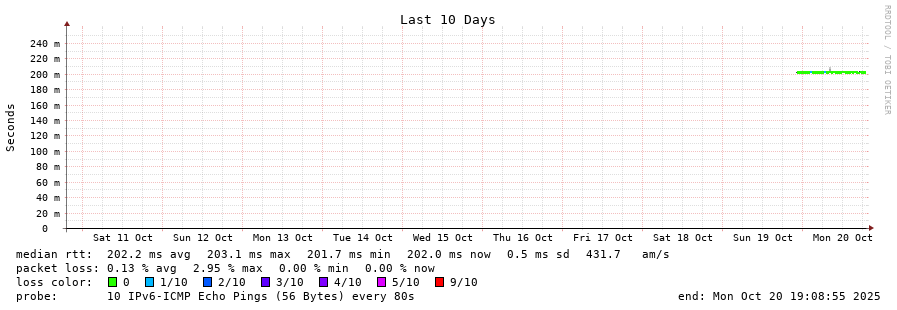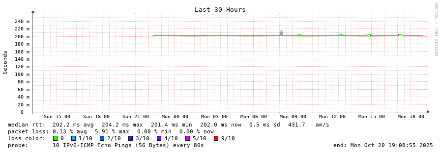 traceroute to 2402:1f00:8002:100::f72 (2402:1f00:8002:100::f72), 30 hops max, 80 byte packets - Generated at 2025-10-20 14:00:01