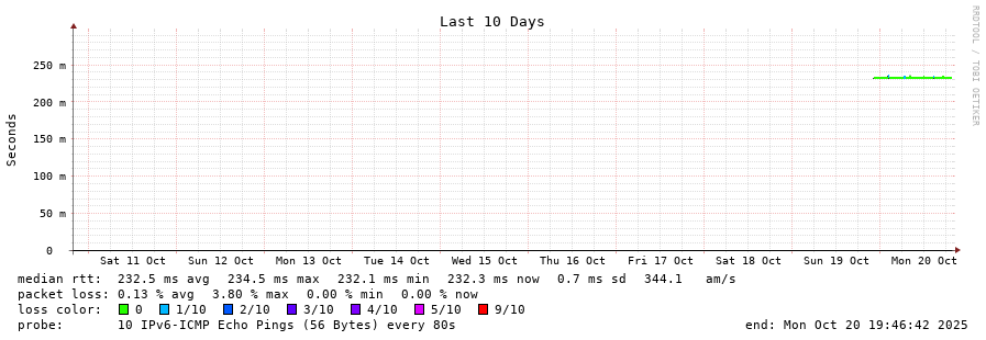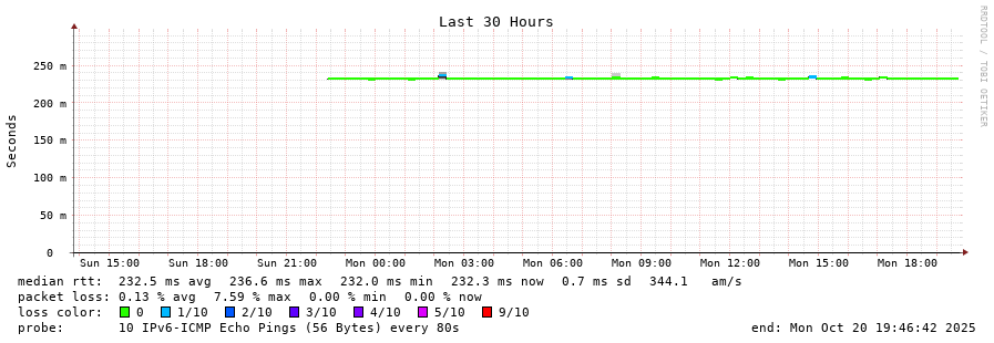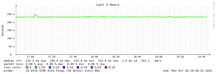 28 > syd1-sy2.smokeping.ovh.net (2402:1f00:8102:100::79e) [AS16276] 232.505ms 232.499ms 232.518ms