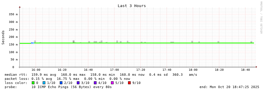 14 > 200.87.253.7 (200.87.253.7) [AS6568] 158.471ms 157.937ms 158.125ms