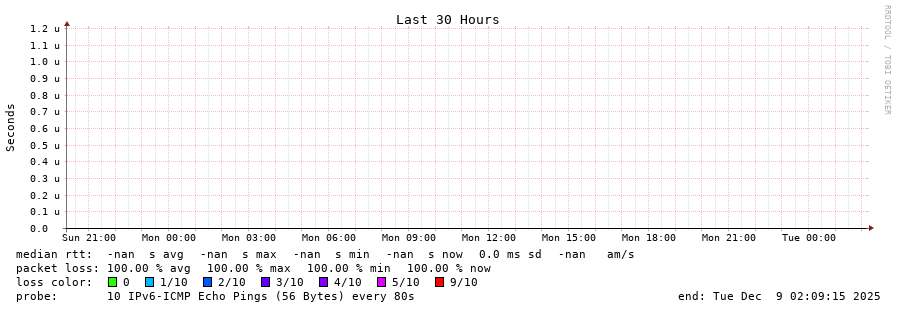 traceroute to 2001:49f0:d0b0:6::2 (2001:49f0:d0b0:6::2), 30 hops max, 80 byte packets - Generated at 2025-12-06 23:00:01