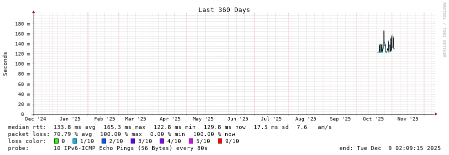 25 > 2001:49f0:d125:20::a01 (2001:49f0:d125:20::a01) [AS174/AS1299/AS30058] 129.746ms 129.737ms 129.777ms