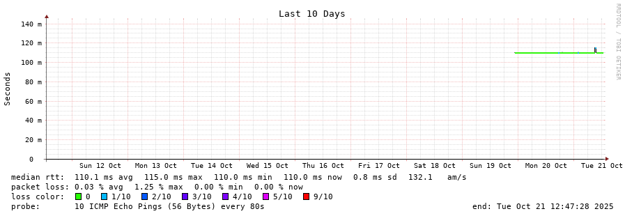 10 > 89.221.40.2 (89.221.40.2) [AS6762] 95.942ms 95.905ms 95.855ms