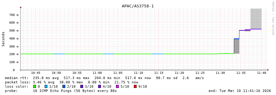 44. Max Roundtrip Time 0.265 seconds