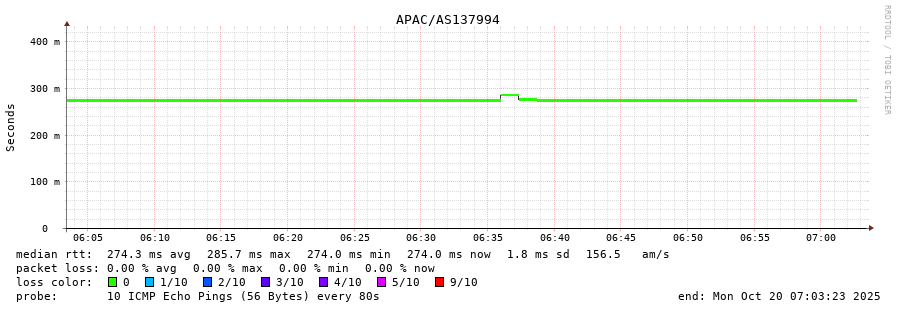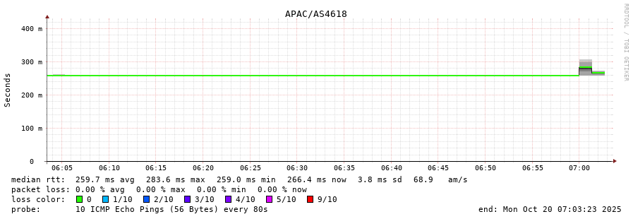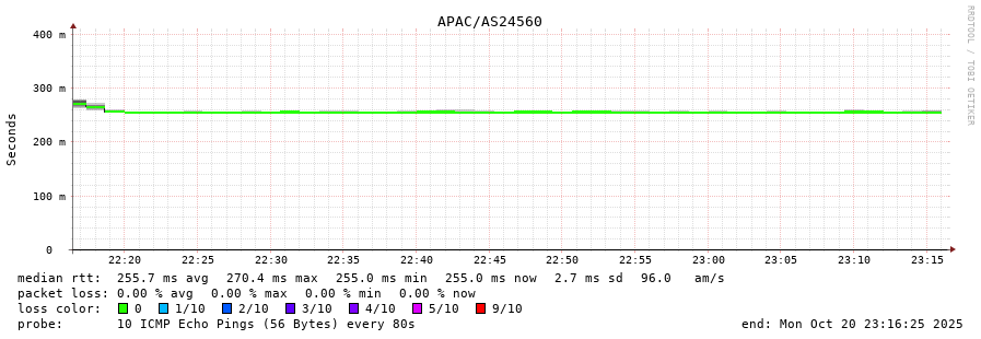 23. Median RTT 0.255 seconds