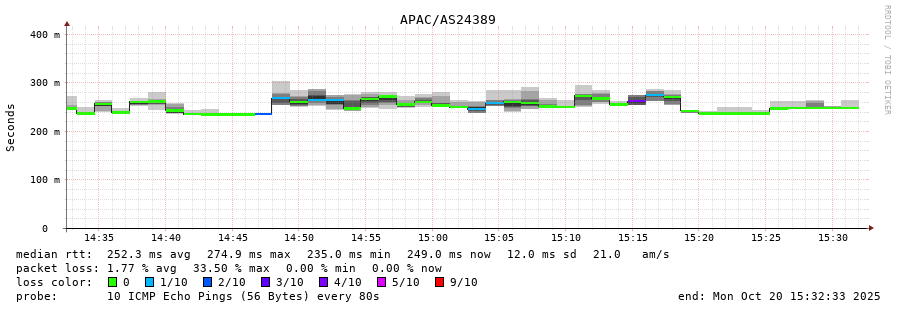 25. Median RTT 0.251 seconds