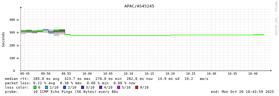 45. Median RTT 0.238 seconds