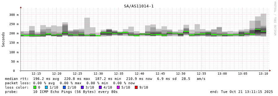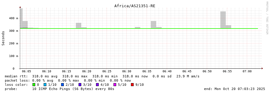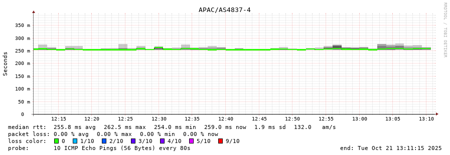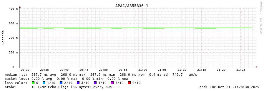 21. Median RTT 0.257 seconds
