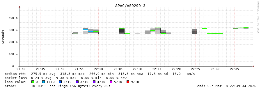 8. Median RTT 0.313 seconds