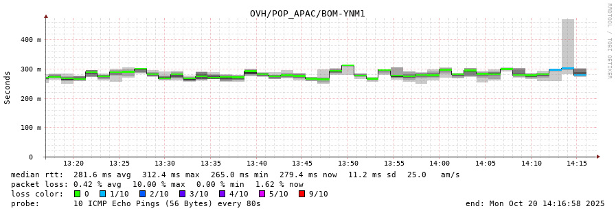 10. Median RTT 0.276 seconds